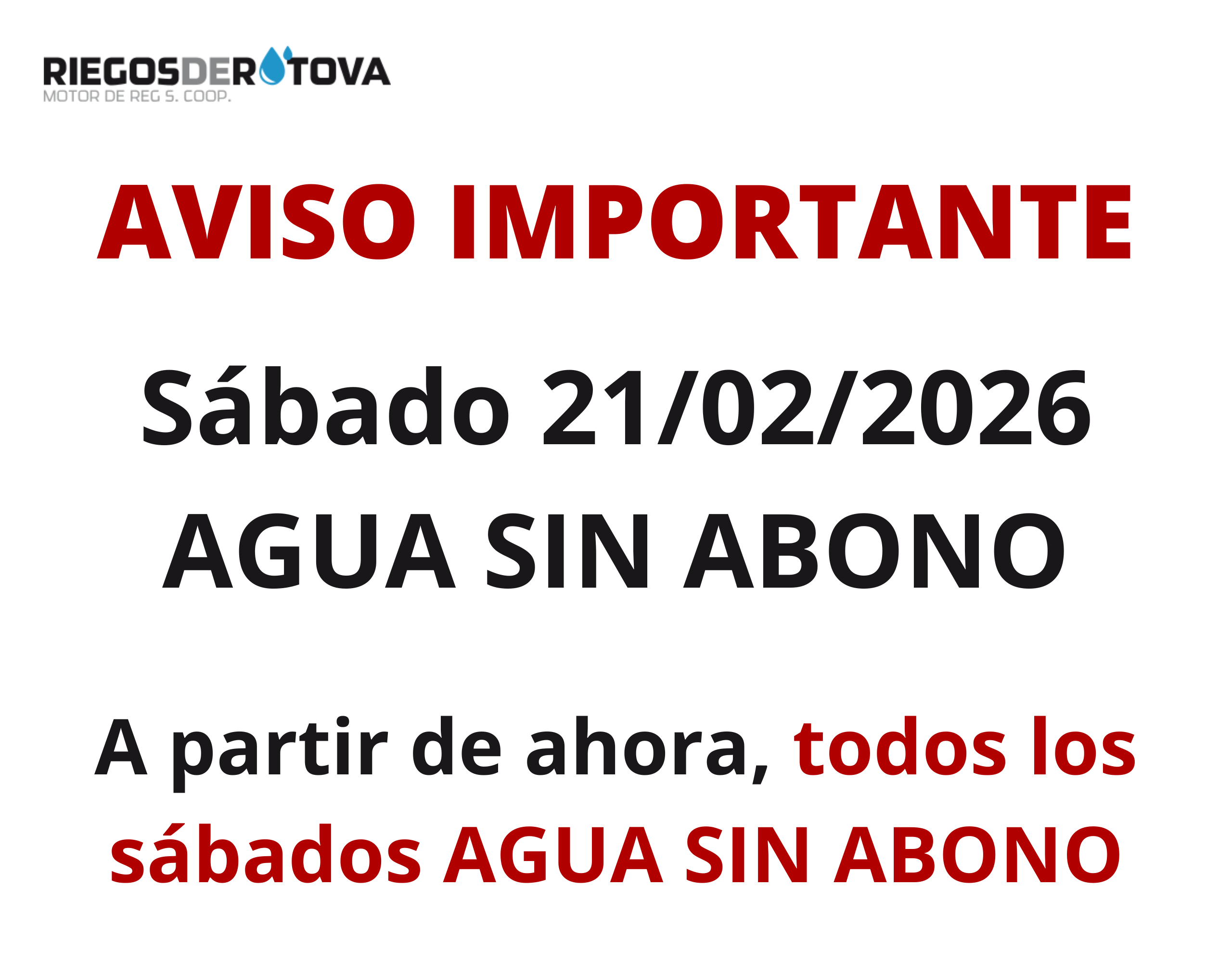 AVISO IMPORTANTE – AGUA SIN ABONO